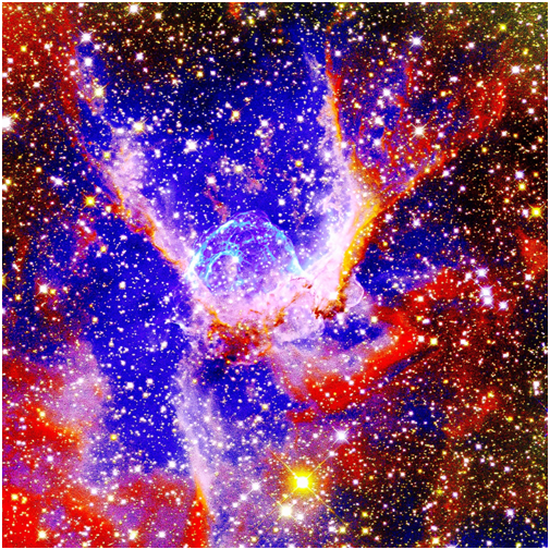 This space photo shows a 2200-year-old supernova rubble that sweeps a lot of matter-enough to form 45 Sun! The picture shows the supernova debris in blue, while cosmic dust is shown in pink.