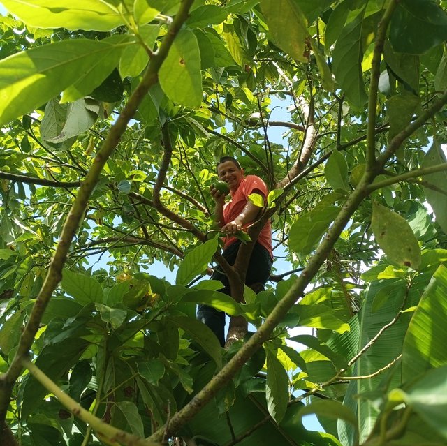 Yo como un buen mono , me logré subir a la mata para poder agarrar los aguacates ya que estos estaban muy difíciles para tumbarlo y atraparlo!