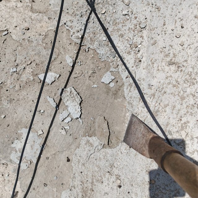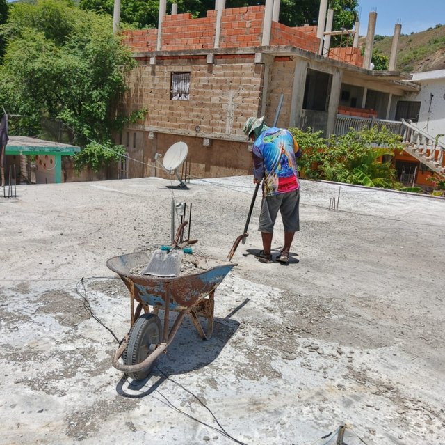 Así que mi amigo carache inicio a trabajar aquí para quitar con una coa todo ese cemento que habían echando sobre la placa de la casa de mi abuela , este trabajo es bay fuerte , por qué es a toda la placa de la casa que. Ay quehacer el levantamiento de ese cemento para luego volver aplicar otra capa de cemento pero como debe ser!
