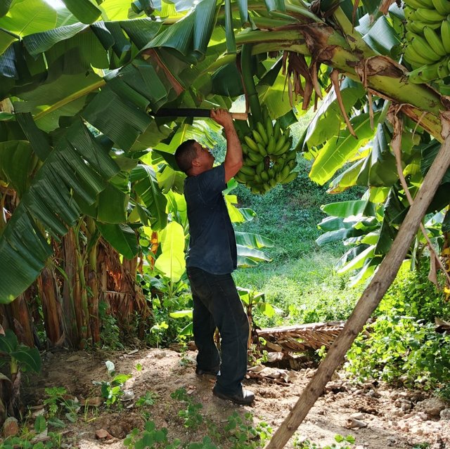 Luego de almorzar nos vinimos a la casa para cortar un racimo de plátano el cual compartieron con mi amigo, realmente estoy muy agradecido con el por toda su ayuda aunque mis tíos lo están ayudando económicamente, siento mucho agradecimiento por qué mi amigo trabaja bastante como decimos en mi comunidad : trabaja como un burro!!