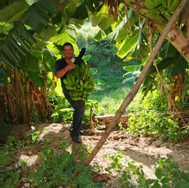 Así que corte el racimo y le di su parte, mi amigo estaba muy contento por qué el sabe que aquí en la casa lo apreciamos mucho, además le echa pierna a cualquier trabajo!!