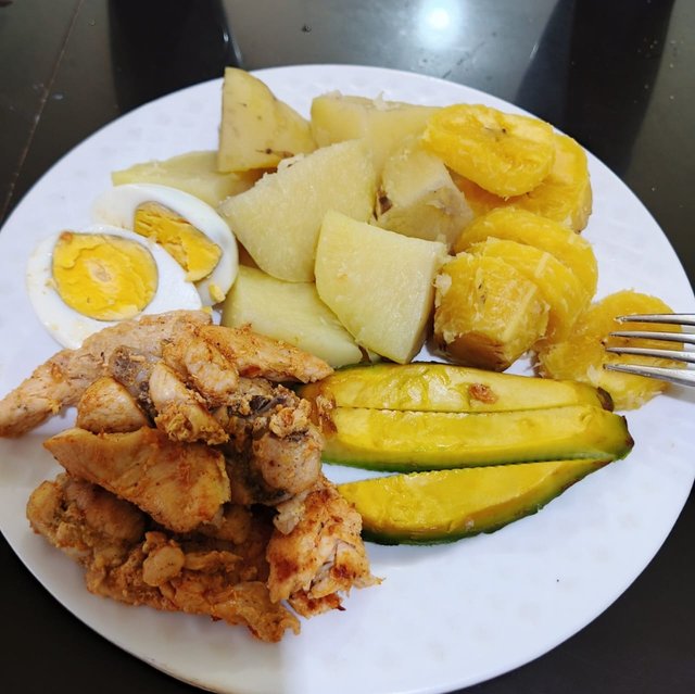 Llegué a casa , me cambio la ropa y me senté a almorzar una comida bastantes saludable , pollo horneado ,plátano sancochado, papa , huevo y aguacate la verdad es que este día estuvo muy buena la comida!