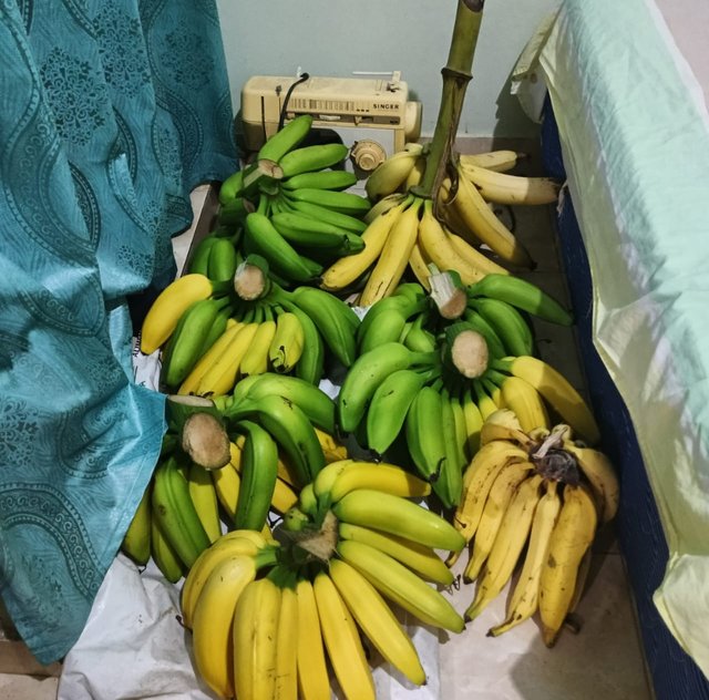 Así son mis tíos cuando siembran y cosechan algo, los reparten entre la familia, por eso Dios siempre los Bendice porque comparten su cosecha, así como usted comparte la bb cosecha de cambur con sus familiares y hay que cortarlos porque sino de noche llegan los murciélago y los pican.