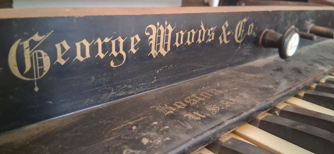 El instrumento es un George Woods & Co, hecho de madera y parece que marfil. Nadie de los presentes nos pudo decir la edad del instrumento musical, pero buscando referencias en internet conseguí que la empresa estuvo activa hasta finales del siglo XIX, es decir que su construcción pudo ser en 1890.