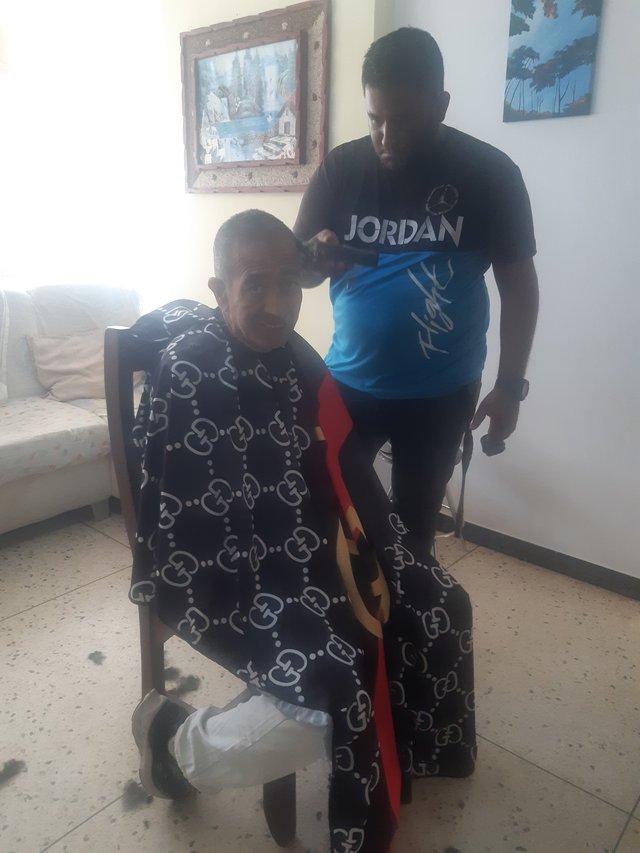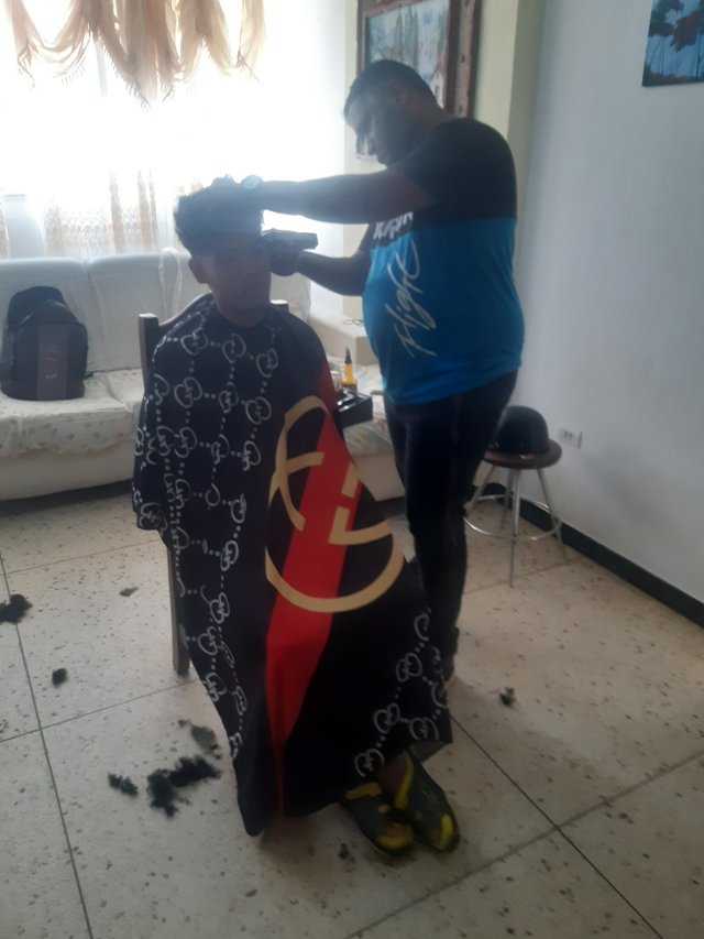 El día de hoy mi hijo quería cortarse el cabello por el regreso a clases en la Universidad, por lo que yo también aprovecharé para cortarmelo, ya que tengo tiempo que no me lo corto, por lo que se me ocurrió llamar a un amigo que trabaja a domicilio para que viniera a casa y me dijo que en una media hora venía y finalmente llegó puntual, me gusta afeitarme con él porque maneja precios razonables para ser a domicilio, y por los dos me cobró 10$ ( 96,0 Steem).