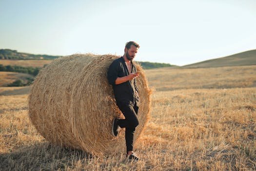 https://www.pexels.com/photo/handsome-sexy-man-standing-near-hay-bale-in-field-5036093/