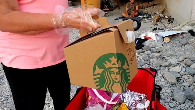 Independence Day week, Holy Smoke passes out hot dogs and Starbucks sponsored coffee to their tunnels friends.