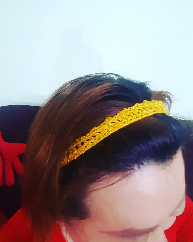 My Siling Headband. Took me 1 hour to crochet using gold colour yarn. Tadaaa... Happy Harvest Festival, Kotobian om Kounsikaan Tadau Tagazo do Kaamatan kumaa doid diozu saavi avi. Aramaiteee