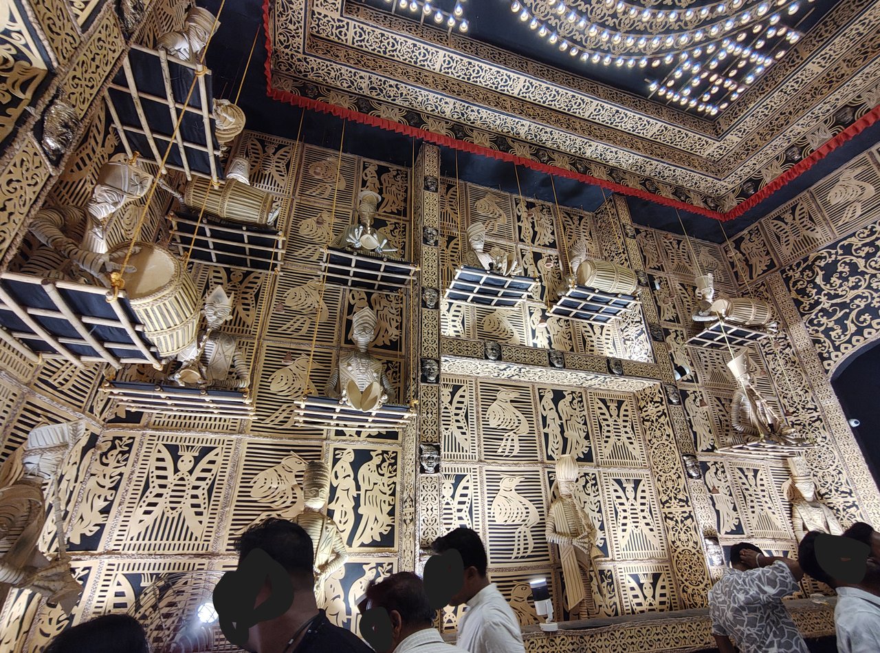 প্যান্ডেলটি আমার কাছে কিন্তু এক কথায় অসাধারণ মনে হয়েছে। কেননা চারিদিকের কারুকার্য এত সুন্দর ভাবে শিল্পী ফুটিয়ে তুলেছেন যা দেখে আমরা মুগ্ধ হয়ে গেলাম।