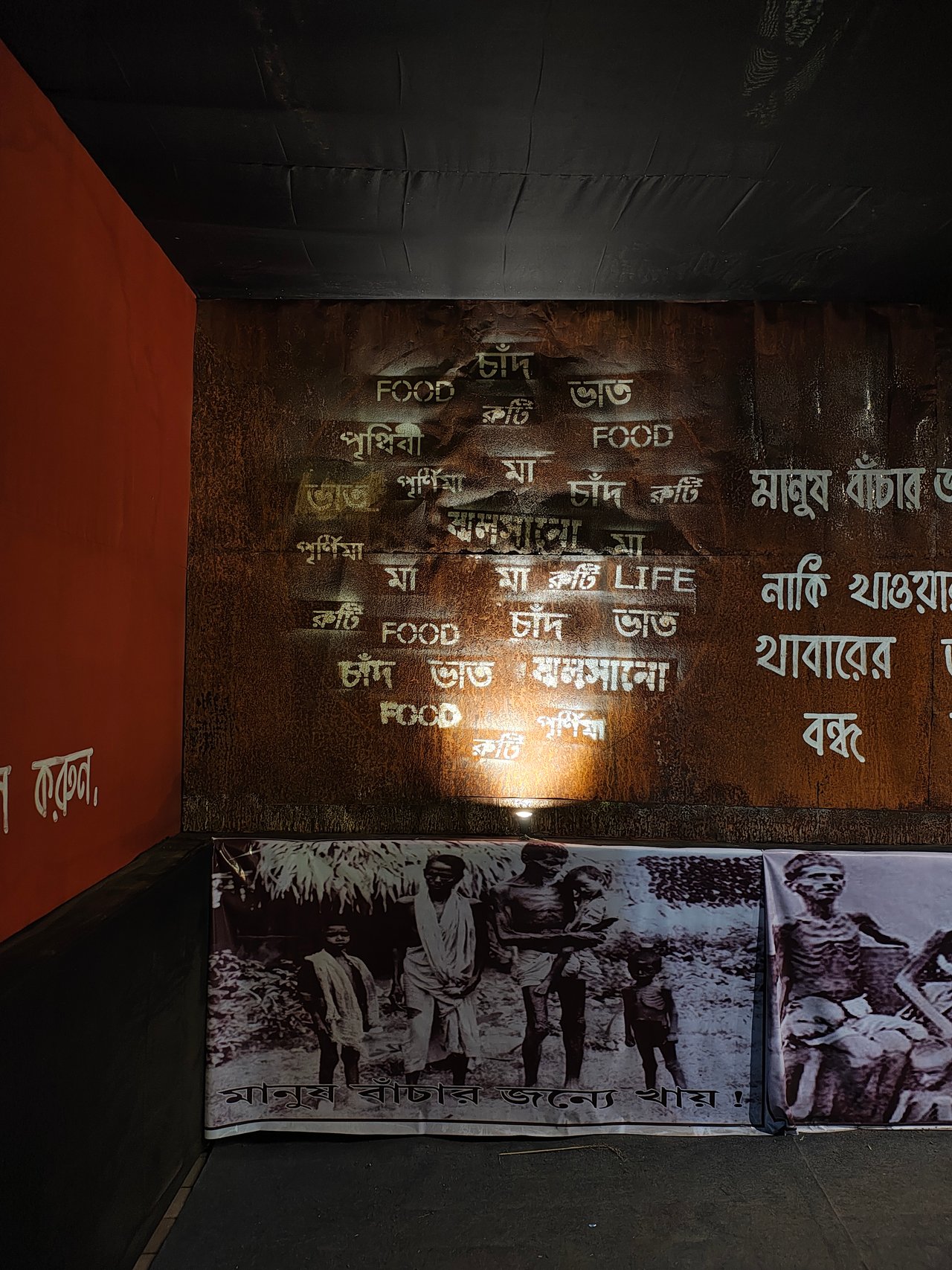 আসলে প্যান্ডেলের ভিতর প্রবেশ করতে করতে আমরা চারিদিকের দেয়ালে বিভিন্ন ধরনের নীতি বাক্য এবং মানুষের খাবারের কষ্টের ছবি দেখতে পেলাম।