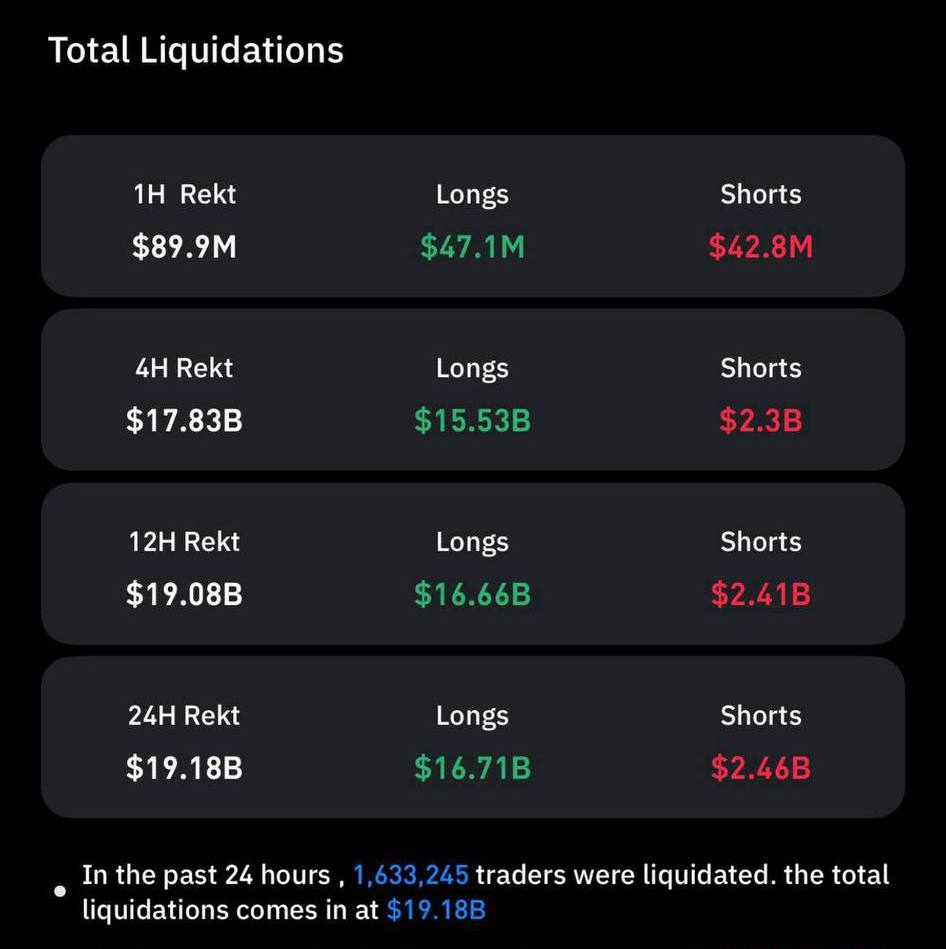 🔴 Сегодняшнее падение: ликвидации на $19.16 млрд