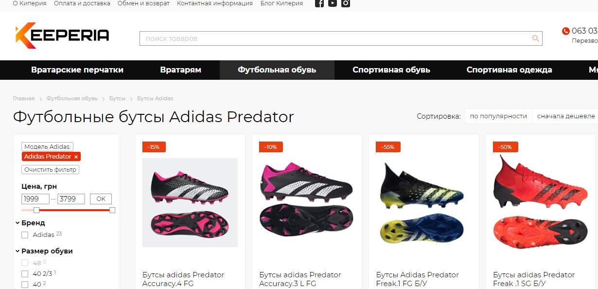 If you are interested in soccer boots, I recommend checking out https://keeperia.com.ua/ru/butsy-futbolni-adidas-predator/. There you will find a wide range of Adidas Predator soccer boots. These boots are the perfect choice for both professional and amateur players. Visit the site and choose your pair of boots to enjoy comfort and quality while playing!
