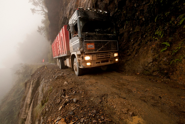 Se trata de estar a milímetros o centímetros de caer al vacío o de que te pueda caer una avalancha de rocas sobre tu cabeza, ahora te pregunto ¿te atreverías? Mi respuesta es no! Y no es porque sea cobarde sino que prefiero no jugar con mi vida así, pero para aquellos que lo hacen no se trata si les gusta o no, es una necesidad y una realidad a la que las alternativas son lo de menos y como tal tienen que aventurarse por estas carreteras mortales, en donde no se sabrá si llegaras a tu destino ileso o muerto.