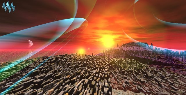 El brillo de las dos estrellas se reflejaba en el visor de mi traje, es claro que este mundo nunca sería habitable, pero un horizonte con un par de luminarias poniéndose resultaba muy atractivo y hasta poético, lamentablemente nunca podrá servir de inspiración a ningún artista.