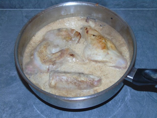 Retire la tapa 1/4 hora antes del final para reducir la salsa girando los trozos de conejo.