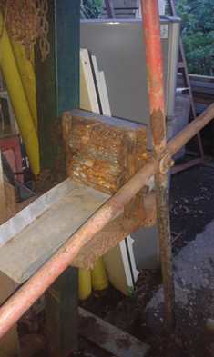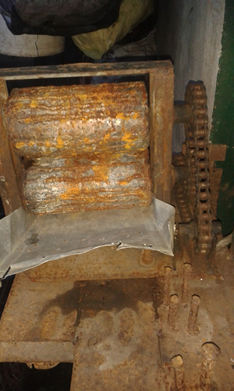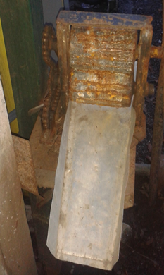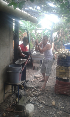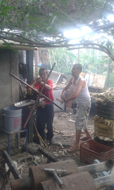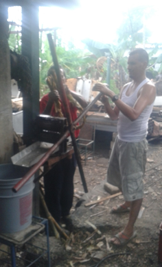 En esta oportunidad, quiero hacer mención del trapiche manual, Si… el TRAPICHE DE DON SANTIAGO ¿por qué ese nombre? Bueno porque mi padre, DON SANTIAGO, fue quien lo elaboró… un trapiche que se puede decir o denominar como artesanal ya que fue construido con material de hierro de desecho, el cual fue usado por mi padre, estos materiales son: cadenas viejas y piñón de moto para el engranaje, tubo redondo de 3 pulgadas de aproximadamente 30 cm de longitud para los rodillos de moler, cabilla lisa de 1 ½ pulgada para el eje, tubo redondo de 1 pulgada para las palancas, además de la soldadura pero sobre todo las ideas de creación de DON SANTIAGO, quien se encargó de ubicar cada pieza en el lugar y le dio el funcionamiento deseado.
