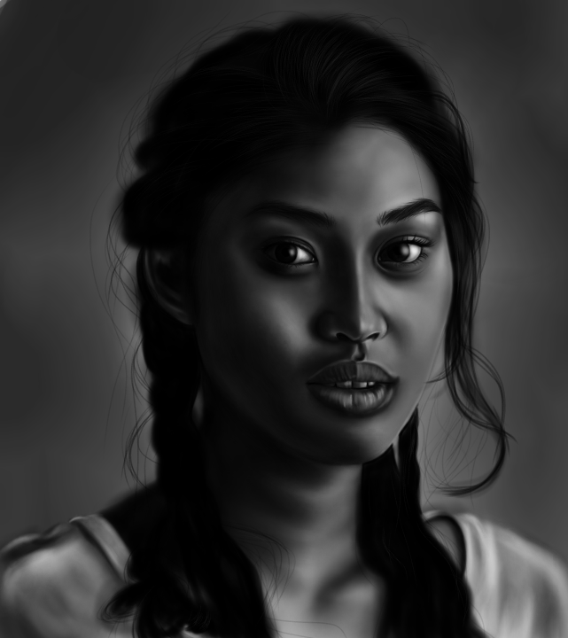 Este es el dibujo digital número 10, lo he hecho en blanco y negro, porque es una de mis técnicas favoritas, toda la transición entre sombras y luces es muy interesante. Utilicé esta técnica muchas veces con lápices de grafito, y quería aplicarla en el dibujo digital. No hay duda de que practicar el realismo digital es un poco complicado, debes ser muy detallista y, sobre todo, muy paciente, no digo que sea un experto, pero puedo decir que la experiencia que he adquirido me ha llevado a tenga estas dos condiciones en mente. Dibujo con los dedos y siento que es aún más complicado, pero he aprendido a dominarle, aunque admito que a veces extraño usar lápiz.