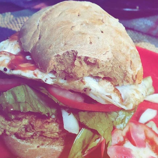 Me encanta comer en la calle una buena hamburguesa, pero mucho más placentero es preparar todo, hasta el pan en casa. Hamburguesa casera con carne hecha con granos. .