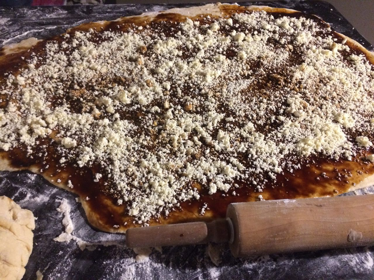 Expandimos el papelón, el queso, y espolvoreamos canela, luego procedemos a enrrollarlo con cuidado.