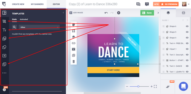 Sin lugar a dudas, la cantidad de plantillas disponibles en la versión gratuita, nos permite disfrutar de una gran cantidad de imágenes, colorido y fuentes, que nos ayudarían a crear nuestros banners a partir de la re-edición de estos. Espero que sea de provecho para tí amigo, @gustavoadolfodca... saludos y éxitos...