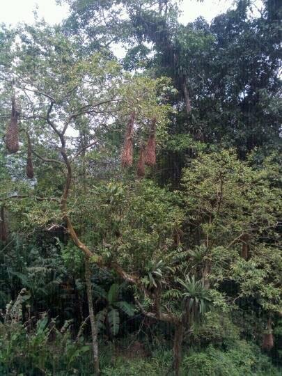 Nidos de Arrendajos (Cacicus Cela), abundantes en la región.