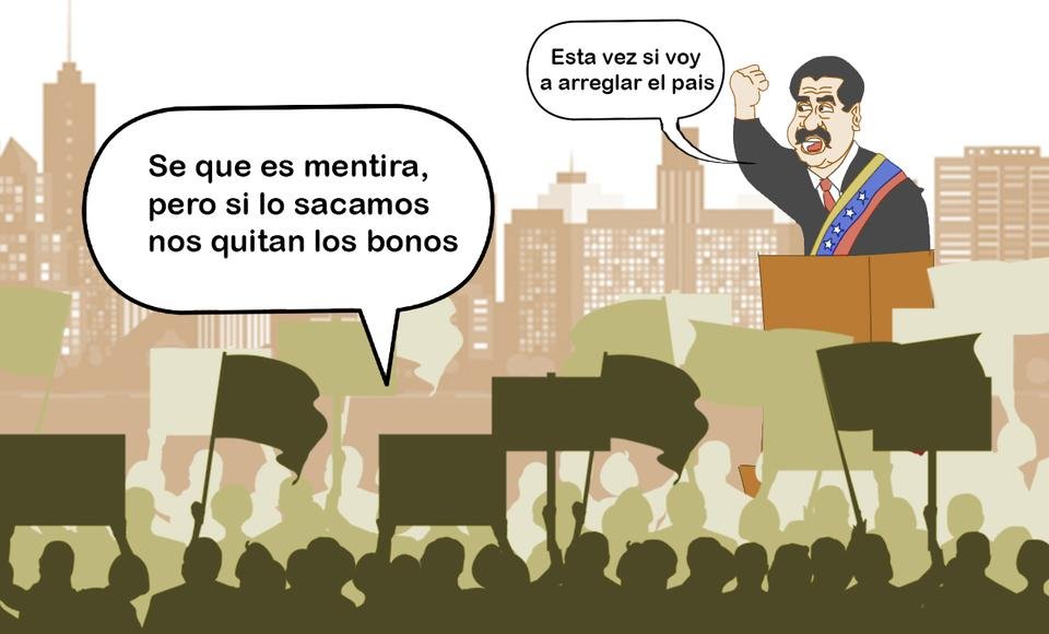 Hace unos días mientras hacia una cola para comprar harina, unas señoras estaban conversando sobre la situación del país, algo muy normal en estos días, pero una cosa llamo mi atención, y fue que una de las señoras afirmaba que maduro debía abandonar el puesto de presidente, pero temía que quien fuera el nuevo presidente eliminara los bonos y las cajas del CLAP.
