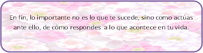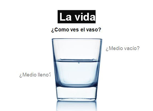 Para algunas personas el vaso está medio lleno. Para otras, esta medio vacío. Es el mismo recipiente; sólo cambia la forma de verlo. Así, no importa lo que está ocurriendo, sino como interpretamos lo que esta sucediendo y como reaccionamos ante ello.