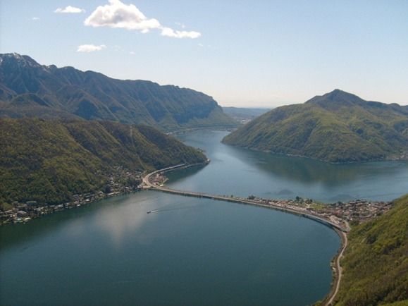La bahía de Lugano, las cimas del lago como el Monte Brè, el Monte Generoso, el Monte San Giorgio, el Monte Lema o el Monte Tamaro.
