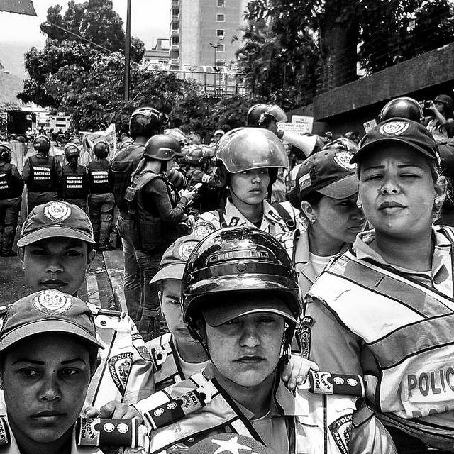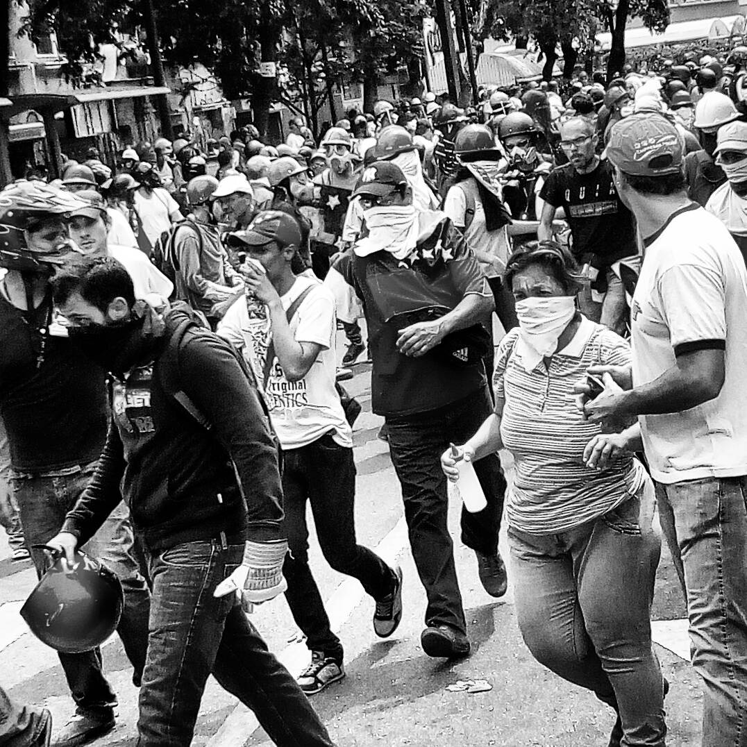 Parecía la misma historia narrada una y otra vez. No importaba la ruta de la marcha, cuando llegara a zona limítrofe del municipio Libertador- El principado de Jorge Rodírguez (PSUV) - aparecería el piquete de la guardia y serían reprimidos. El día que más pude acercarme al piquete fue cuando desplegaron a las mujeres de la policía, aunque nos trataron a empujones, no detonaron lacrimógenas.