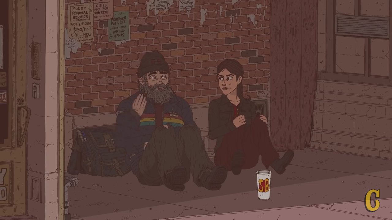 El le contesta que en realidad es más complicado que eso, y que cualquiera podría terminar en circunstancias de ser mendigo... simplemente le tocó a él... Para ella el asunto no es tan complicado, pero él le dice "todos estamos aprendiendo amiga"
