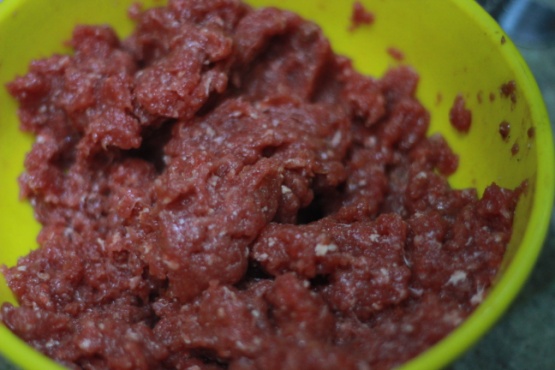 Luego hacemos una bola con la carne y la aplastamos un poco hasta tener la forma de un disco y la dejamos reposando.