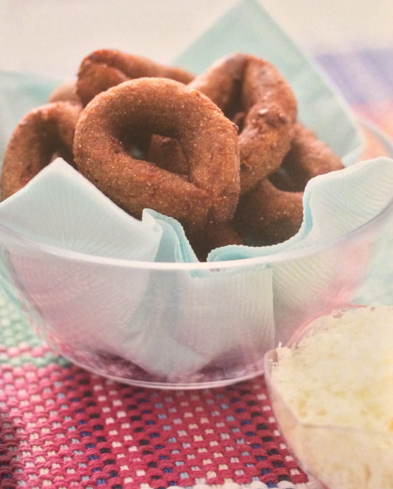Formar churritos de uos 20 cms. de largo, y como de 1,5 cms. de grosor. Únalos por sus puntas para formar unas roscas.