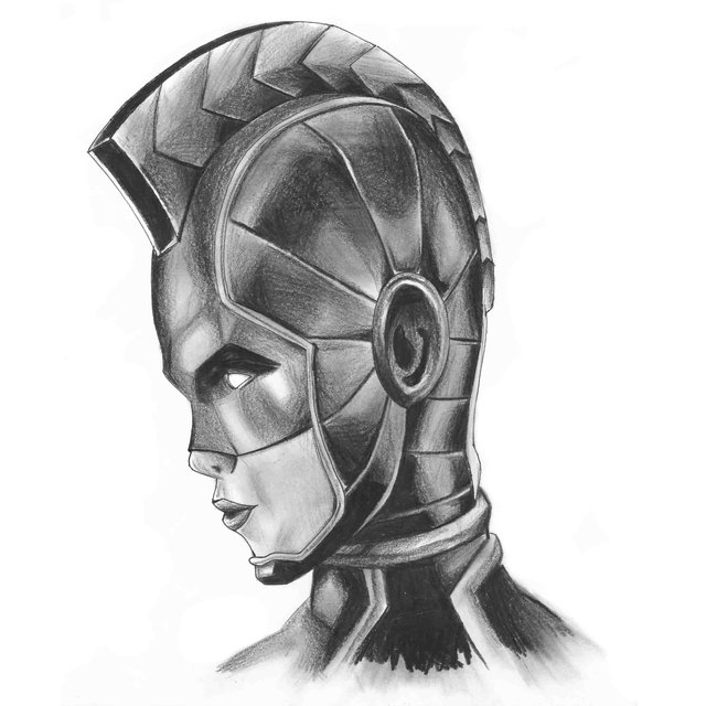 Dibujo de mi autoría sobre Carol Danvers hecho con sólo color negro.
