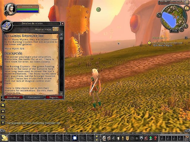 Bueno, todo comenzó en un atardecer no muy diferente al de su mundo, cuando me adentre a territorios conocidos de mi ciudad Islas caminantes del sol naciente, me dirigía a hablar con Magistrix Erona mi primera guía de exploración donde me mandarían a mi primera misión en los alrededores de Islas caminantes del sol naciente. Hablando con ella, lo cual no fue una charla muy larga que digamos, descubrí que mi primera misión era a un par de llanuras, no muy lejano de donde me encontraba, mi misión consistía en matar a los Mana Wyrm.