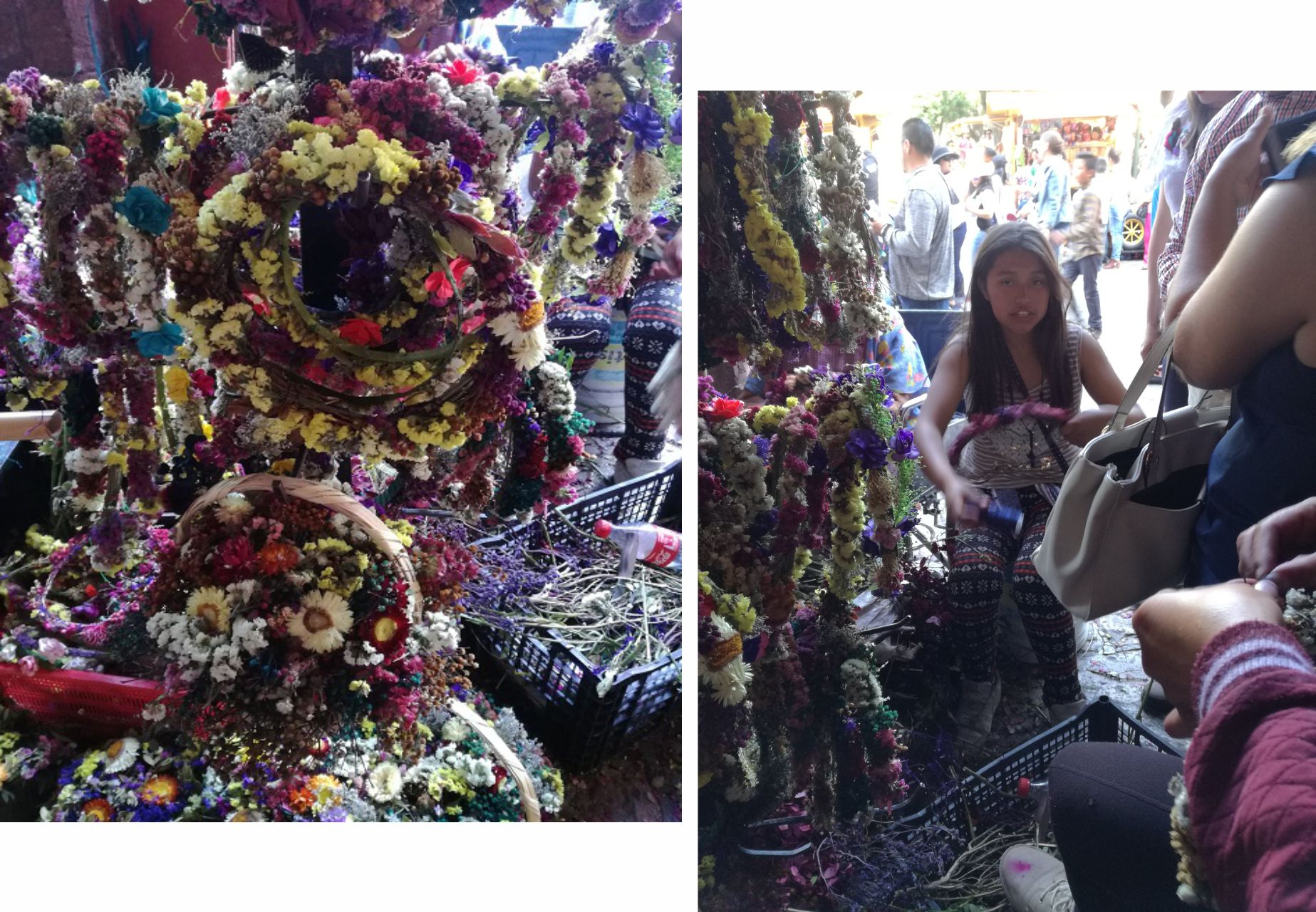 En el centro de San Miguel de Allende, esta linda señora es la persona que dirije la elaboración de estas hermosa coronas y canastas hechas con flores disecadas o también llamada "naturaleza muerta" (nombre que no me gusta mucho). ¿Les recuerda a alguien? ¿no será "Coco"? ¡sí! la de la película, ¿verdad que es igualita?