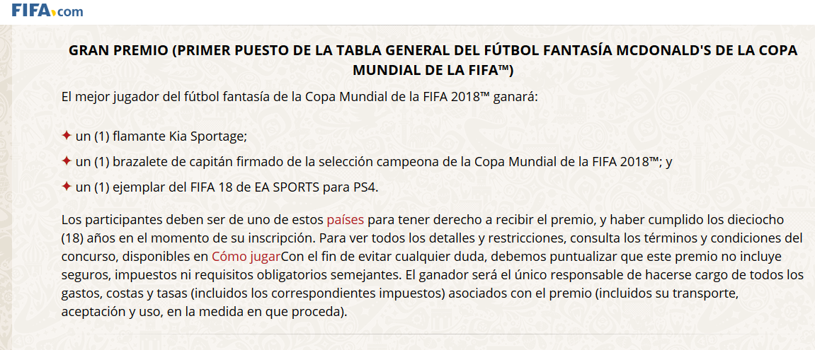 Mundial rusia 2018 Fantasy oficial de la FIFA "Grandes Premios a Repartir"