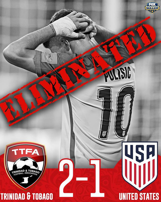 BREAKING NEWS!!! USMNT Failed to Qualify for the FIFA World Cup!!!!steaknsteem (59)in #sports • 8 years ago The United States Men's National Soccer Team has failed to qualify for next year's FIFA World Cup 2018 after a heartbreaking 2-1 lost to Trinidad and Tobago. #fifa #news #usmnt #futbol
