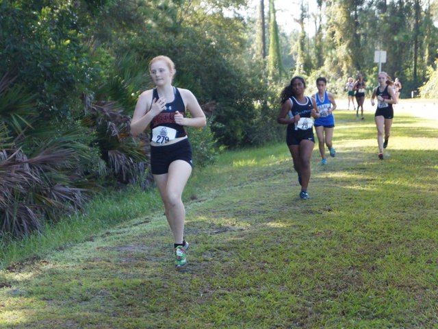 This photo is from the girls high school junior varsity race at the 2018 University of North Florida Invitational cross country meet.
