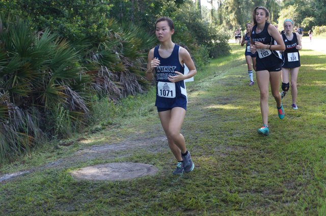 This photo is from the girls high school junior varsity race at the 2018 University of North Florida Invitational cross country meet.