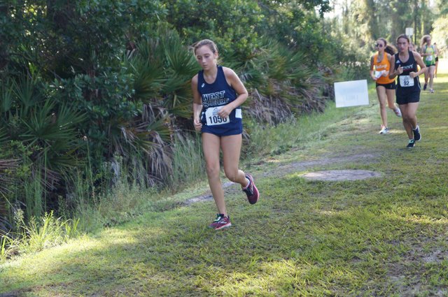 This photo is from the girls high school junior varsity race at the 2018 University of North Florida Invitational cross country meet.