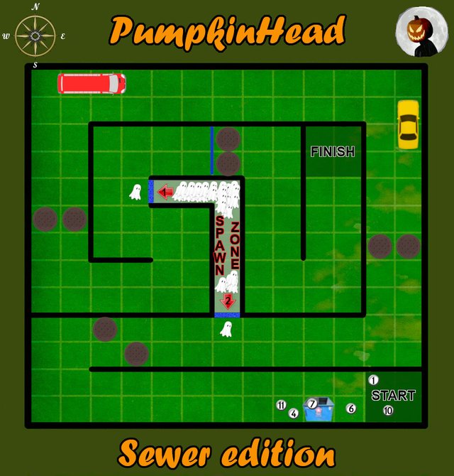 Get the key from PumpkinHead to unlock the gate that blocks your path to the finish line, then have everyone move into the designated FINISH area.