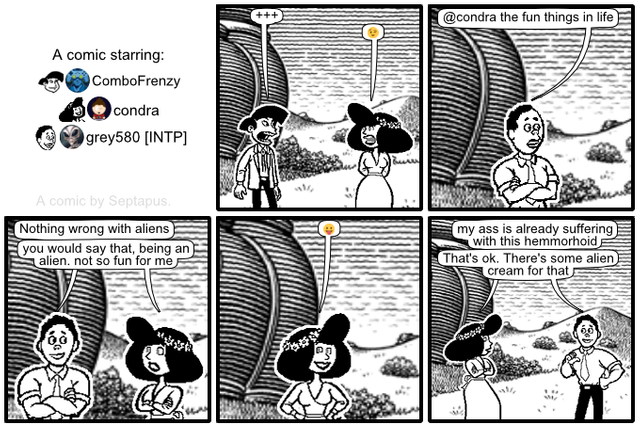 Steamspeak comic of the day 2017-08-17grey580 (61)in #steamspeak • 8 years ago Sometimes on SteemSpeak we get into these really odd conversations. But I gotta say, they are fun. Interesting times. #comic #random #weird #funny