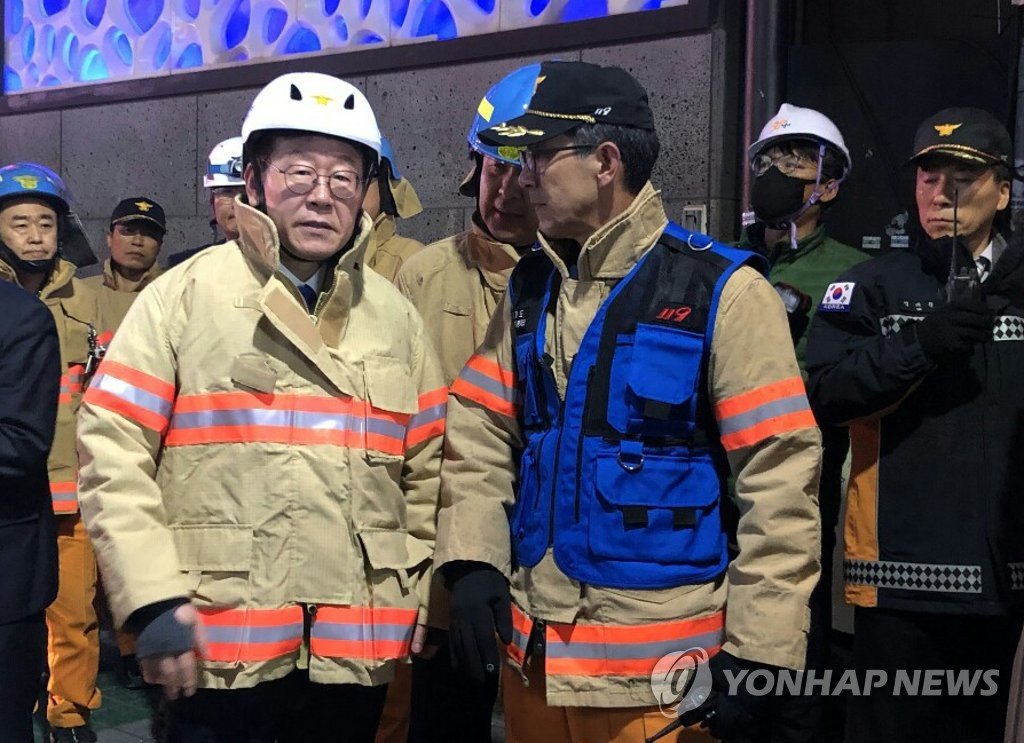 이재명 지사도 수원 골든프라자 화재 현장 방문하여 상가 화재현장을 방문, 소방당국의 현황보고를 받았다고 합니다.