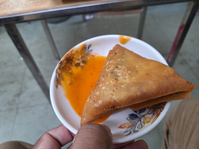 I went to my favorite shop for evening snack and there was a very good samucha available. I bought a samucha from here and sat inside and ate it with sauce. This food satisfies me in the evening. I will go to change one of my clothes from yesterday's shopping before going and after changing it, Asif will come and I will shop from another shop today.
