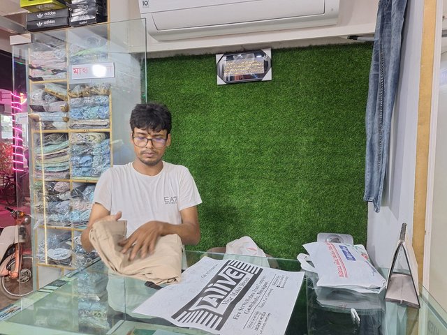We went to a shop from where we have bought many clothes before, a very trusted shop for us. I am looking at pants here, I am looking at a few pants but they are not in size. I tried on as many clothes as possible today but every pair of pants is too tight. Finally, I liked one pair and I bought it. After finishing, we had a light breakfast and went home. While going home, I brought my ironed clothes and came home. After freshening up, I spent some time on Steemit after having dinner. I am ending this day like this, Alhamdulillah, the day passed with health.