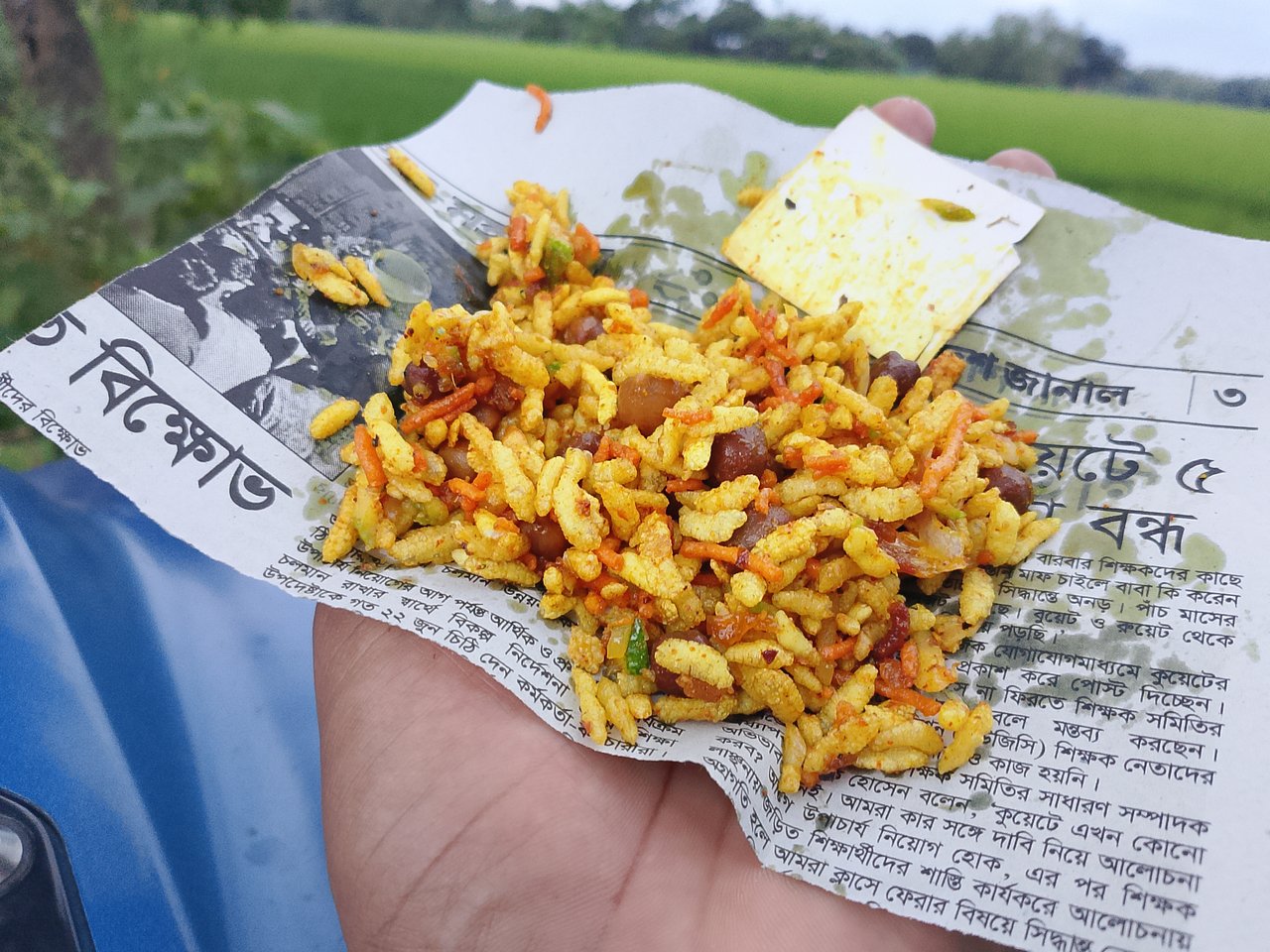I was sitting next to the road in the afternoon. I saw a familiar Jhalmuri Ola going to stop and told him to make the jalmuri. His jerk was pretty delicious to eat. With a very good chili onion oil, he made the jalmuri t, then he made the spices in a short time and made the jalmuri. And it was nice to eat. In the afternoon, I enjoyed eating Jhalamuri in the afternoon. Thus, the time can be very good to be spent.