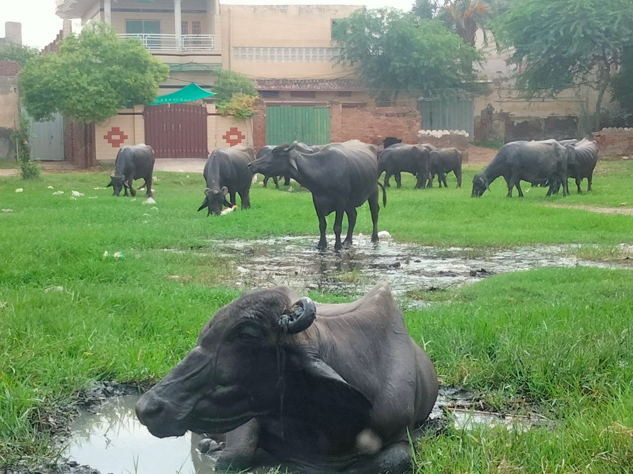 Maaz also started insisting on going to his grandfather's house. so, I went to drop him off at his grandfather's house. There is a ground on the way. Many buffaloes had come there to graze in front of our house.There is a big ground in front of our house.Maaz was very happy to see them.It was already afternoon and Mannat had also come from her grandfather's house. So, I took the children to the room and rested for a while. My brother-in-law was also there. so,I made tea ☕ for him. After sending tea to the drawing room, I washed the dishes. And then I bathed the children.