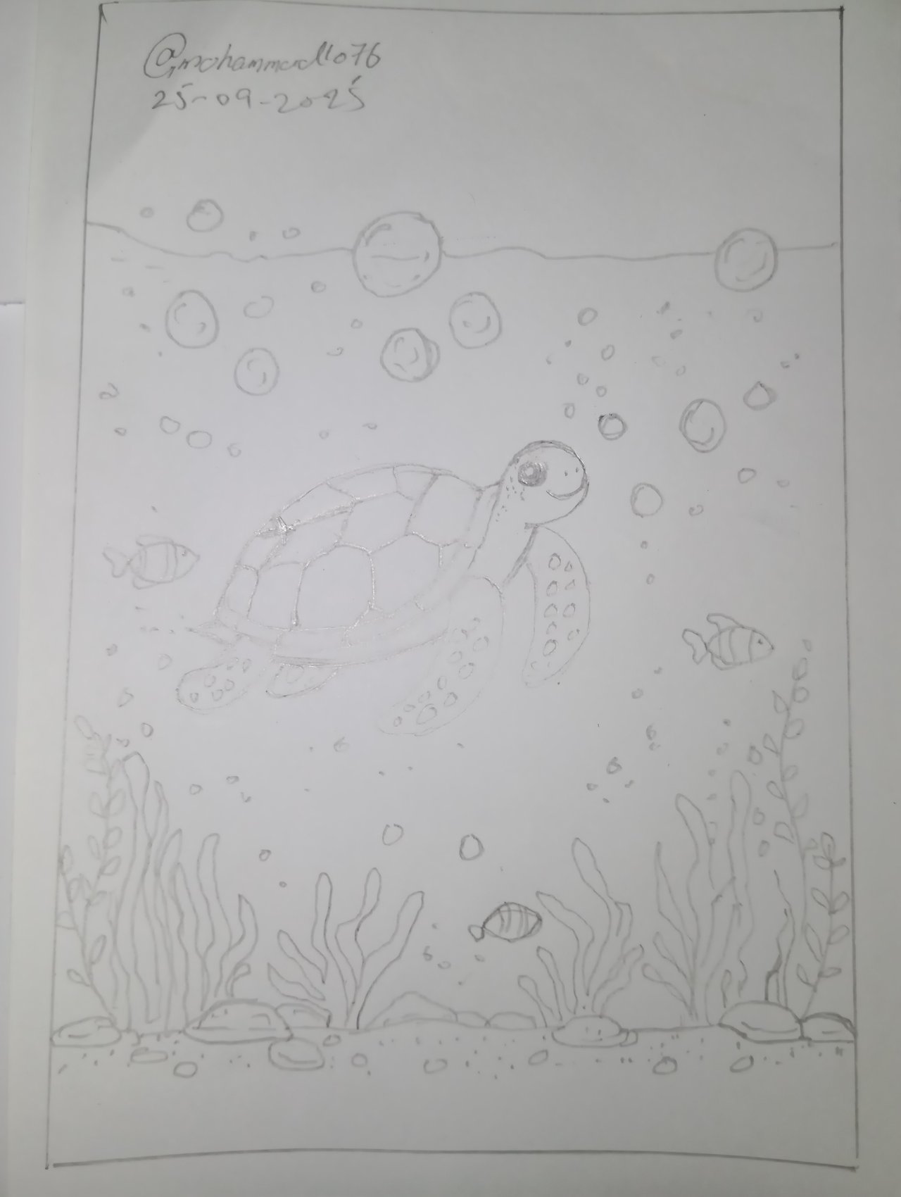 In my drawing, you can see a green turtle transposing gracefully in the middle of the ocean. Around it, there are small fishes, various corals, bubbles, and gemstones at the bottom. I wanted to disport the enchantress of aquatic life and how astounding nature is when we take a occasion to adhere it. The turtle is a symbol of peace and elongate life, and for me, it represents tolerance and strength.