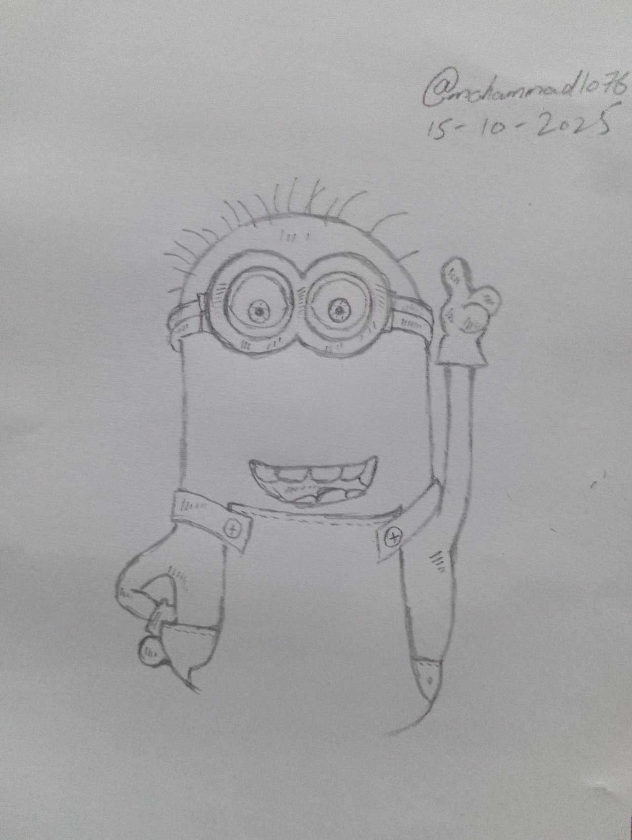 Total time taken to the drawing of the minion is 1 hour because it's having very unique style and looks that I draw it very carefully.