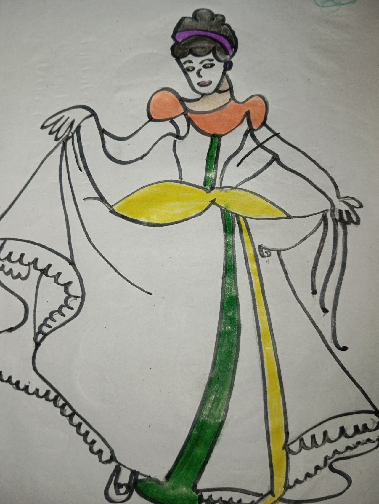 I completed my drawing and this is my selfie.My daughter's frock had a picture of Cinderella embroidered on it, which I liked very much. Seeing this, I sketched and drew a drawing of Cinderella and colored it.